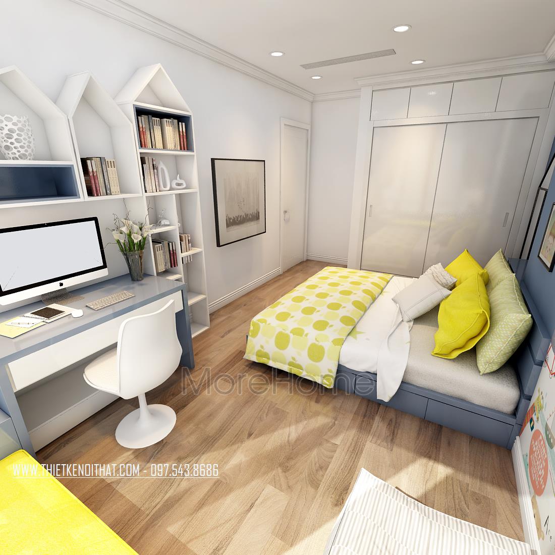 Thiết kế nội thất phòng ngủ đặc biệt chú trọng đến tính cá nhân, nổi bật nhất chính là việc dùng màu sắc trong từng không gian. Các căn phòng khác nhau sử dụng các tone màu khác nhau dựa vào sở thích và mong muốn của mỗi thành viên, gợi mở một không gian riêng tư thân thiết. Bên cạnh đó, các thiết kế kệ, tủ quần áo kết hợp giúp tiết kiệm không gian đa năng khá nhiều, tránh cảm giác bí bách trong không gian hẹp.