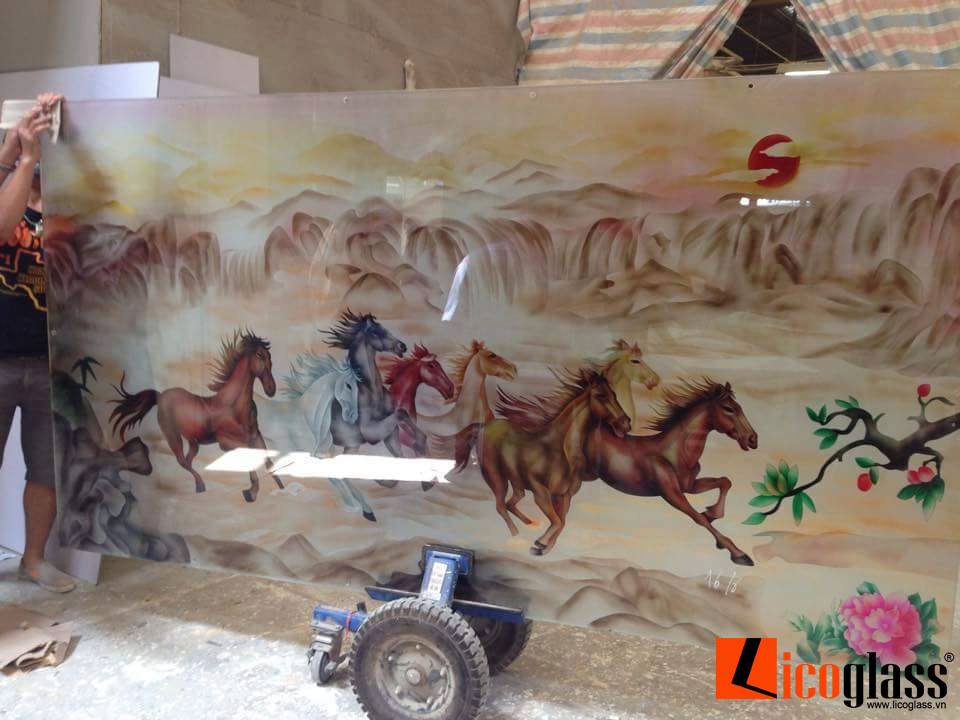 Tranh kính bát mã là dòng tranh kính nghệ thuật được tạo nên trên chất liệu kính cường lực vừa bền vừa sáng bóng và đẹp. Bức tranh này là sự kết hợp tổng thể hài hòa của vẻ đẹp và hình ảnh bắt mắt. Hình ảnh những con ngựa đang phi nước đại với khí thế hừng hực và tràn đầy năng lượng là tượng trưng cho sức mạnh, quyền lực và uy lực siêu phàm, khát khao chinh phục. Bên cạnh đó, 8 là con số may mắn theo ý nghĩa phong thủy, tượng trưng cho sự giàu có và thành công.