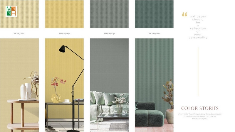 Giấy dán tường Hàn Quốc tone màu xanh lá, vàng